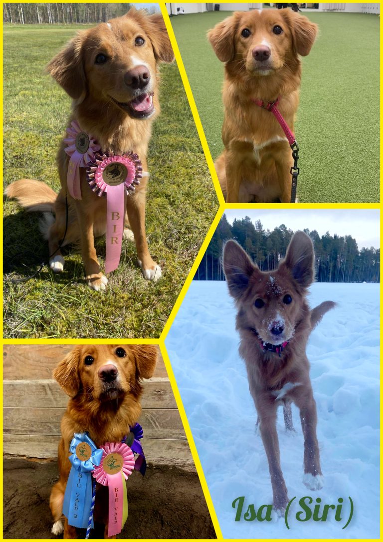 Mentalt: Fint BPH (hela kullen). Excellent Nybörjarklass Tollingjaktprov. Tempererad i vardagen, driv i jakten. Eftersökshund, godkänd anlagsprov viltspår. Mamma Tollarjaktchampion.
